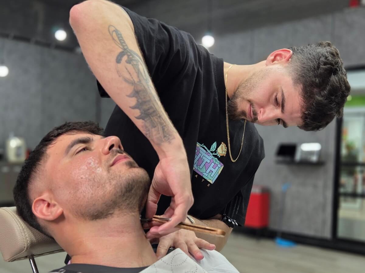 תספורת שבה רוב העבודה על הראש מבוצעת על ידי מספריים בשילוב טכניקות מיוחדות+סידור ועיצוב זקן עם מגבת חמה וסכין (אופציונלי).