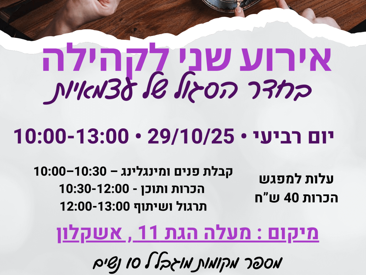 שעה ו-30 דק׳ | פתוח לכולם