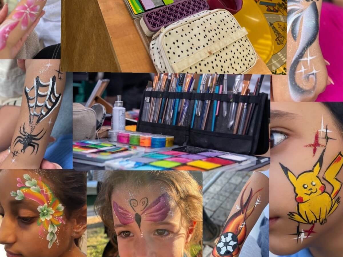 עמדת ציורי פנים וגוף לימי הולדת ואירועים מתאים לילדים וגם לבוגרים מכניס צבע וכיף לאירוע
