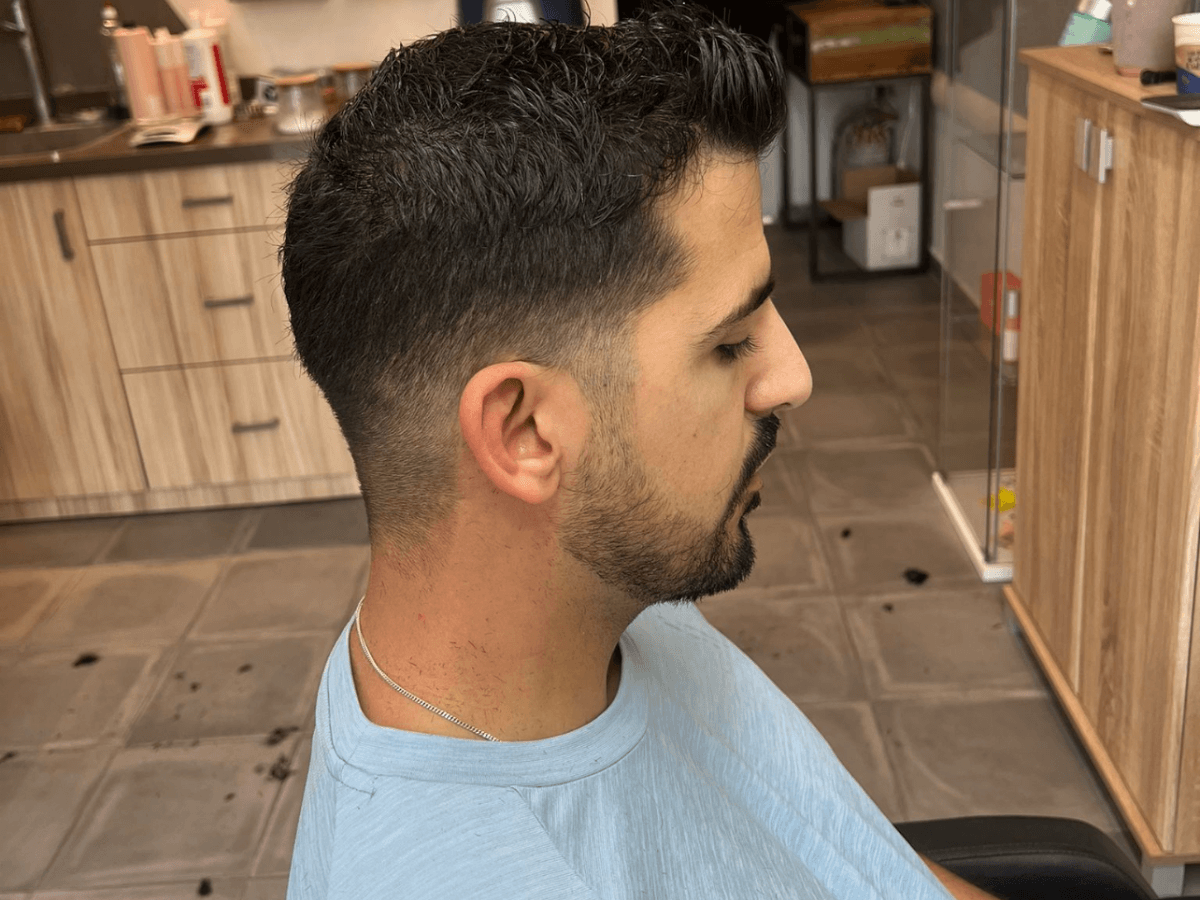 תספורת גבר תספורת מדויקת שמותאמת למבנה הפנים, סגנון אישי וקווי שיער וקוו לסת זקן . שומרת על מראה רענן, מסודר ומטופח – ומוסיפה סטייל וביטחון ביומיום