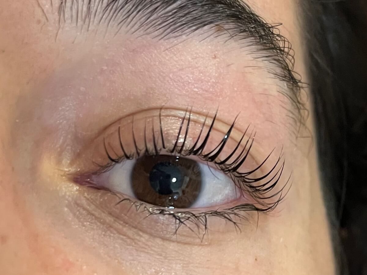 מקבלת להרמת ריסים, הרמת גבות ועיצוב גבות טבעיות.